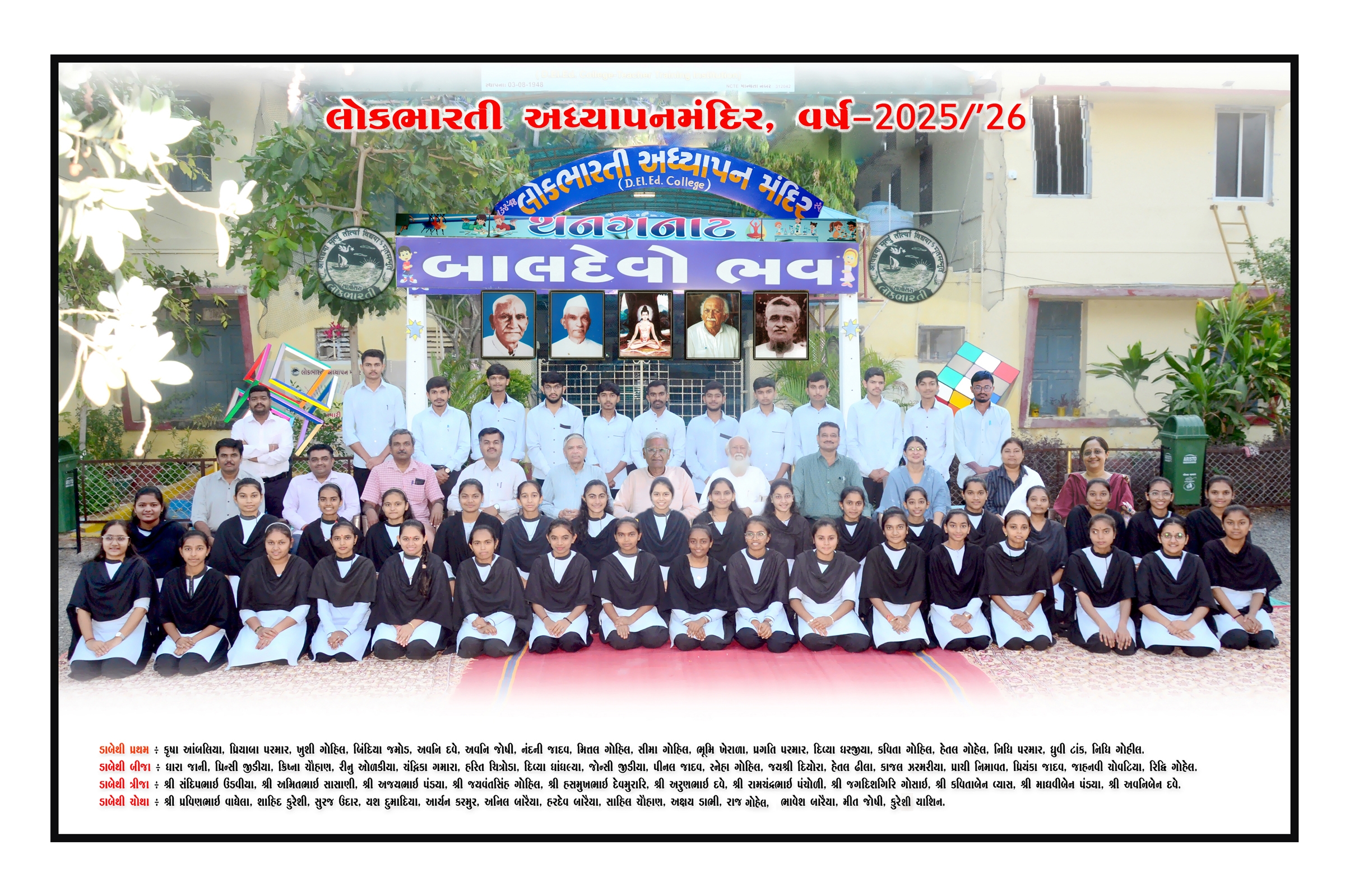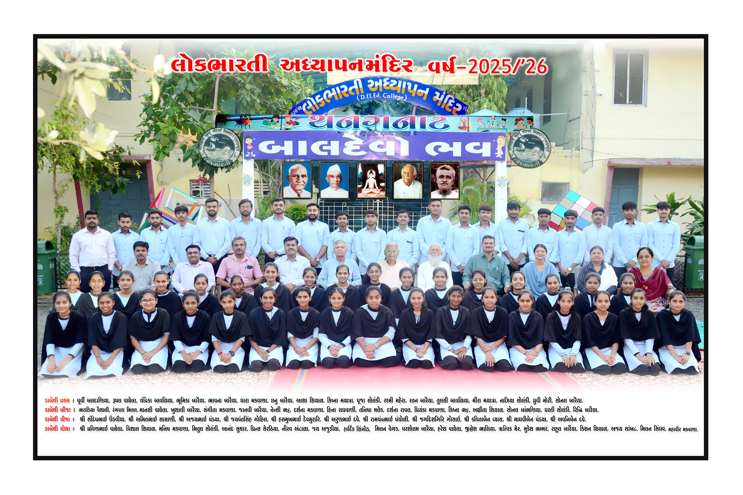 A teacher plays a significant role in the balanced development of a village. As it was considered an essential task to prepare trained dynamic teachers, Adhyapan Mandir had been already started in 1948 at the mother institute – Gramdakshinanamoorti, Ambala, well-before the establishment of Lokbharti. The Adhyapan Mandir was recognized and due autonomy was also sanctioned by the state government in matters of admission, examination-evaluation, result and certification, carrying out experiments in teaching-learning processes. With a purpose of enhancing the ability and scope, this Adhyapan Mandir was shifted to the campus of Lokbharti in 1954. The admission procedure has been centralized by the state government since 2002.